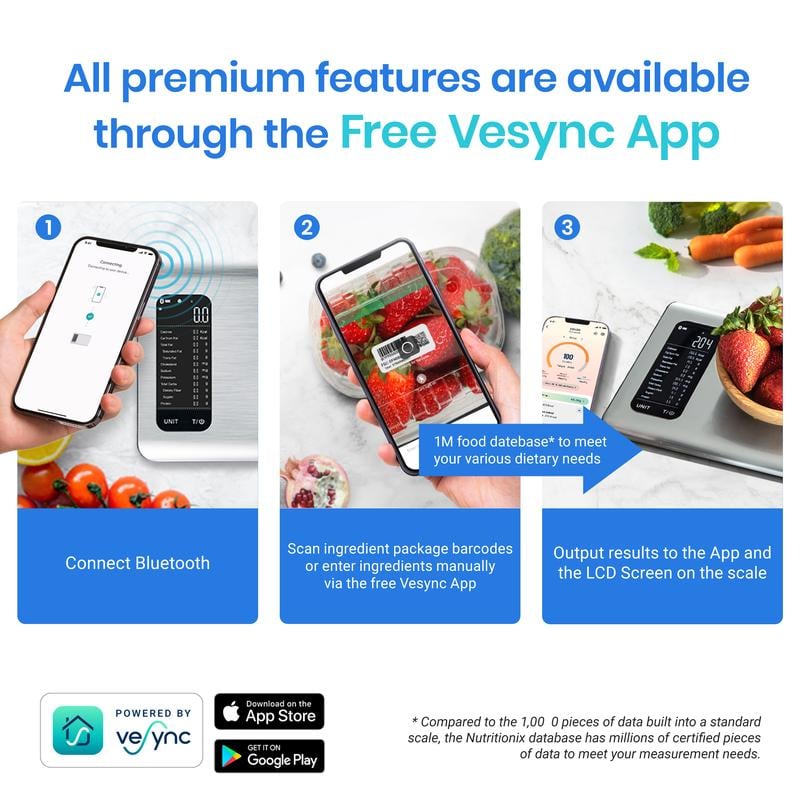 - Dual Display: Nutrition data shows both on the scale’s backlit screen and your phone app — no need to juggle devices while cooking.