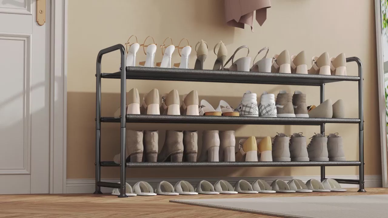 Shoe Rack 3 Tier Long Storage Organizer Wide Metal Shoe Shelf for Closet Entryway Black